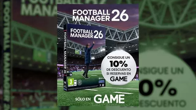 Si estás deseando ponerte a gestionar equipos, ¡hay buenas noticias! Y es que en GAME no solo vas a poder reservar ya Football Manager 26: si lo haces antes de su lanzamiento, vas a poder llevarte un descuento del 10% al comprar el juego, ¡solo si has hecho tu reserva!