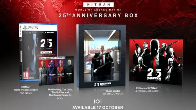 IO Interactive ha anunciado el lanzamiento de Hitman: World of Assassination 25th Anniversary Box, una edición física limitada para PS5 que conmemora los 25 años de la saga. Esta edición especial estará disponible en puntos de venta seleccionados a partir del 17 de octubre y ya puede reservarse por 49,99 euros.