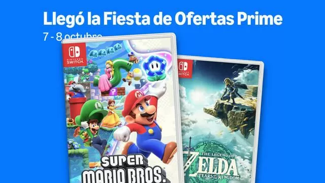 Nintendo se suma a la Fiesta de Ofertas Prime de Amazon con grandes rebajas en juegos físicos de Switch como Zelda Tears of the Kingdom y Super Mario Bros. Wonder, del 7 al 8 de octubre.