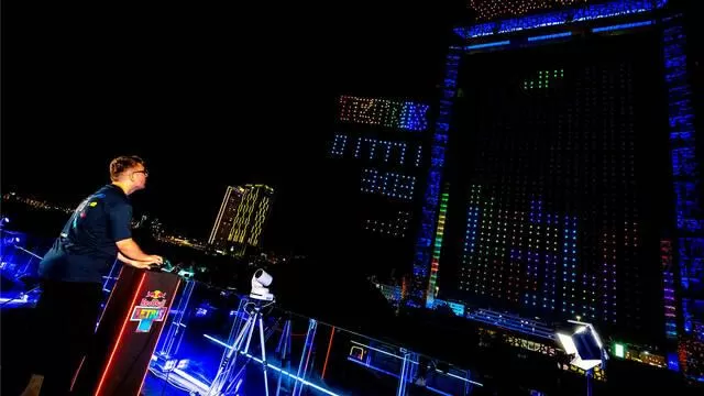 Los organizadores utilizaron el Dubai Frame, un edificio en la zona céntrica de Dubái con un curioso diseño de marco, para colocar los miles de drones que se iluminaban de manera sincronizada en la noche. Según el control del jugador, estos dispositivos representaban la caída y giros de las fichas, un espectáculo que podía verse prácticamente desde cualquier punto de la ciudad.