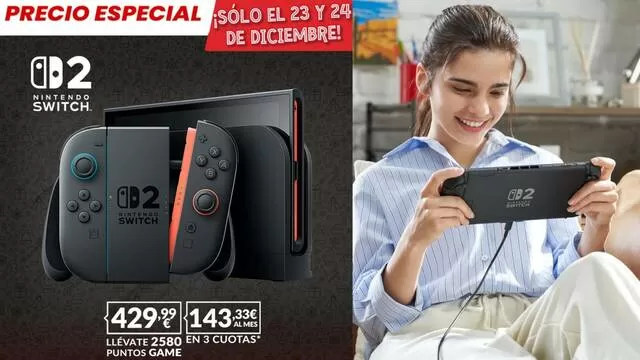La campaña navideña entra en su recta final y GAME ha lanzado una oferta puntual para quienes todavía no han dado el salto a Switch 2. Solo hoy y mañana, 23 y 24 de diciembre, la nueva consola de Nintendo puede adquirirse por 429,99 euros, lo que supone una rebaja de 40 euros respecto a su precio habitual.