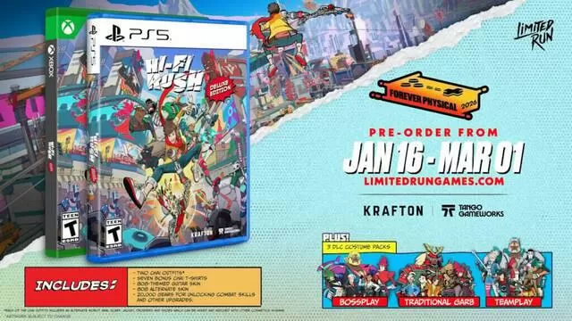 El pasado 5 de enero, Limited Run dio la esperada noticia: en colaboración con Krafton, Hi-Fi Rush llegará en físico a PS5 y Xbox Series X. Las reservas están disponibles hasta el 1 de marzo y hay tres ediciones diferentes, entre ellas una de 175 dólares repleta de objetos para coleccionistas y mercadotecnia.
