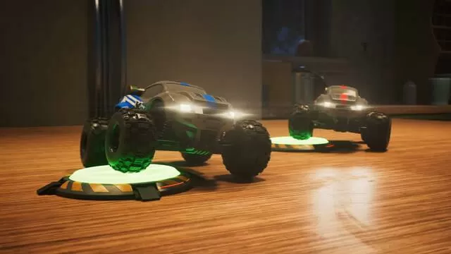 Los coches radiocontrol que manejamos están equipados con una serie de funciones especiales. Podemos realizar saltos para superar obstáculos y llegar más alto, pero también usar un gancho e incluso adherirnos a superficies metálicas mediante unas ruedas que funcionan como imanes.