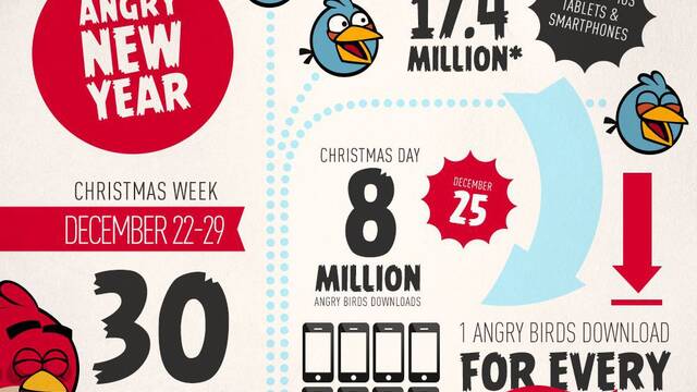 Rovio ha anunciado que los juegos de la saga Angry Birds acumularon ocho millones de descargas el día de Navidad.