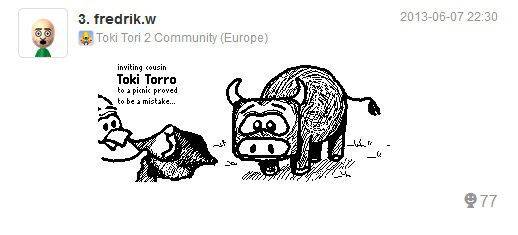 Two Tribes ha convocado la segunda fase de su concurso de dibujo de Toki Tori 2 a través de Miiverse, la red social de Wii U. Además, se ha anunciado al ganador de la semana anterior, que es el que sigue: