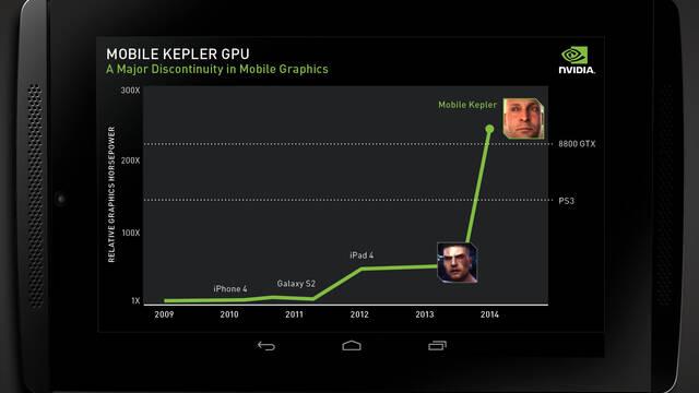 NVidia ha desvelado un revelador gráfico de potencia, situando a Project Logan por encima de su tarjeta 8800 GTX y de la consola PlayStation 3, y muy por encima de la potencia del último iPad, el iPhone 4 o el Samsung Galaxy S2.