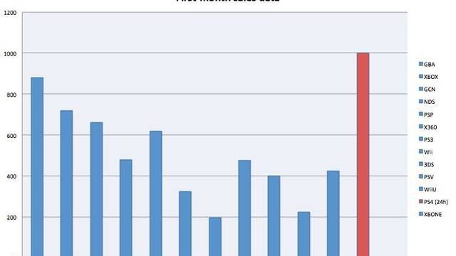 En la imagen adjunta se pueden comparar las ventas del primer mes de varios sistemas con el primer día de PS4.