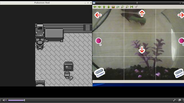 Ahora la "acción" tiene un nuevo protagonista, y en lugar de ser los espectadores quienes elijan el destino de "Red" –o Ash, o como queráis llamarlo–, será un pez. Sí, un solitario pez que gracias a una cámara que reconoce sus movimientos, puede "jugar" a Pokémon.