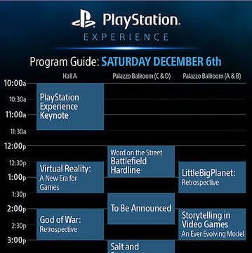 Sony ha publicado los horarios de actividades en PlayStation Experience, que se celebra este fin de semana en Las Vegas.