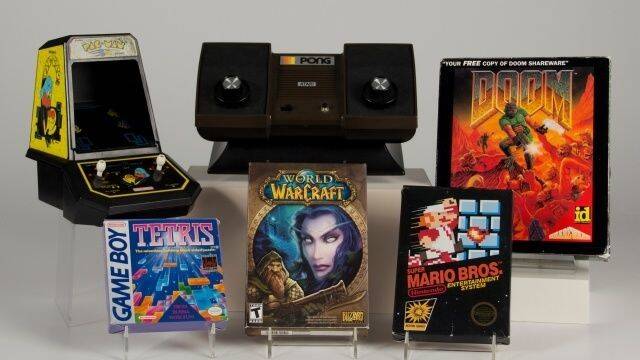 Los títulos seleccionados para inaugurar el salón de la fama de los videojuegos son Super Mario Bros., Tetris, Pong, Pac-Man, Doom y World of Warcraft.
