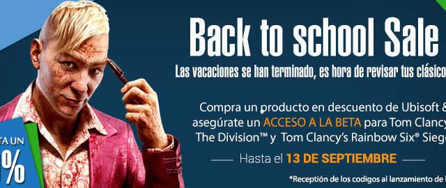 El motivo de esto se debe a la celebración de "la vuelta al cole", permitiéndonos conseguir multitud de juegos como Far Cry 4, South Park: La Vara de la Verdad o Child of Light a precio reducido, entre otros muchos. Además, por la compra de cualquier producto obtendremos acceso garantizado a las betas de Tom Clancy's The Division y Rainbow Six Siege.