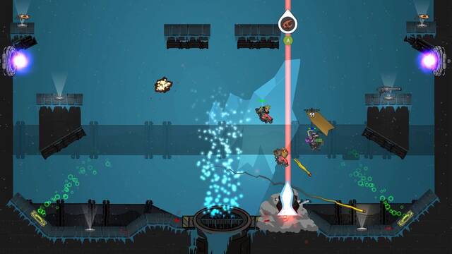 "Cuando a tu jugador le toque aparecer, podrás manejar un láser desde el cielo que se mueve en horizontal por todo el campo. Ver a los jugadores luchar entre ellos debajo de ti te permitirá programar tu aparición en el momento justo para arrasar a enemigos desprevenidos que estén debajo con tu Crashpod", dice Marc Call, director del estudio.