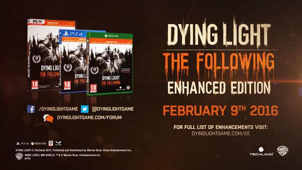 Techland ha mostrado vídeos de Dying Light: Enhanced Edition, la versión mejorada de Dying Light para PlayStation 4, Xbox One y PC, y de la expansión The Following. Se lanzarán el 9 de febrero por 59,99 euros.