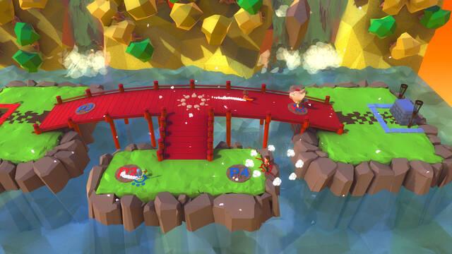A diferencia del tradicional modo "captura la bandera", en Oh My Godheads debes llevar cabezas de dioses que afectan a la jugabilidad.