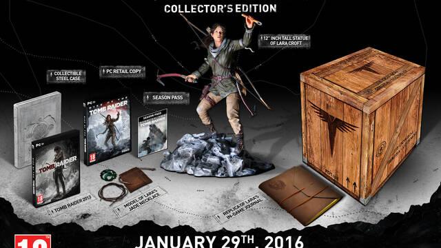 Rise of the Tomb Raider contará también con una edición coleccionista, que incluye una edición de lujo del juego con pase de temporada, una figura de Lara Croft de 30 cm., una réplica del diario y el collar de Lara, y una caja metálica, y estará disponible en tiendas, en unidades muy limitadas, a 129,99€. Dicha edición, estará disponible también través de la tienda online de Square Enix.