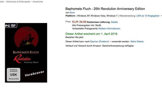 La versión alemana de la tienda en línea Amazon ha recogido en su catálogo una compilación de las cinco entregas de la saga Broken Sword en formato físico con motivo del 25º aniversario del estudio Revolution Software. Esta saga es conocida en el país con el nombre de Baphomets Fluch.