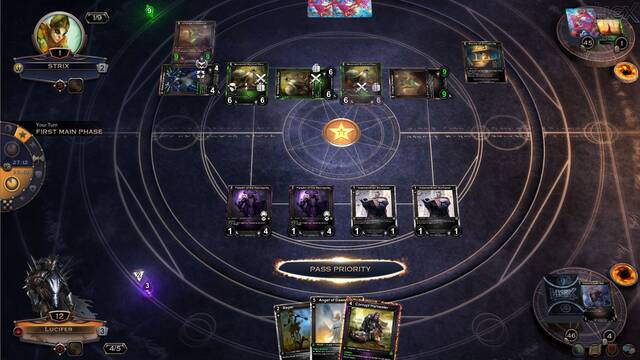 El título combina las dinámicas de un juego de cartas coleccionables con las de un título masivo online.