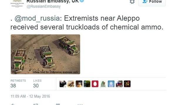 La embajada rusa en Londres ha tuiteado una imagen de Command & Conquer en la red social de Twitter para ilustrar la guerra en Siria. La captura utilizada para hablar del conflicto bélico acaecido en la ciudad siria de Aleppo, pertenecería al título Command & Conquer: Generals.