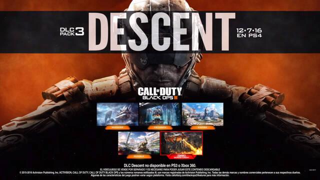 Activision ha anunciado que Descent, el tercer contenido descargable de Call of Duty: Black Ops III, ya está disponible para descargar a partir de hoy en Xbox One y PC.