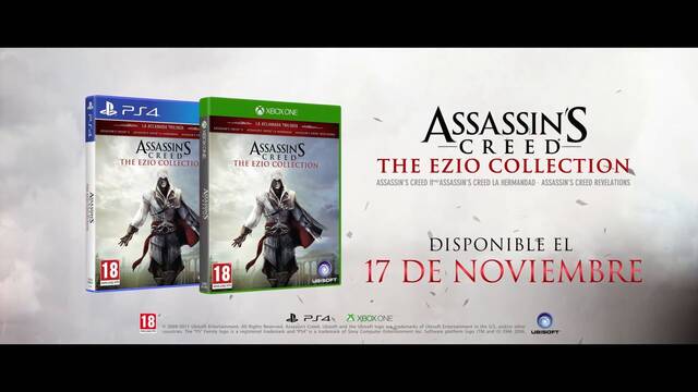 Ubisoft ha confirmado, tras diversos rumores y filtraciones, el lanzamiento de la recopilación Assassin's Creed The Ezio Collection, que llegará el 17 de noviembre de 2016 a Xbox One y PlayStation 4. Para celebrar el anuncio, han distribuido un tráiler.