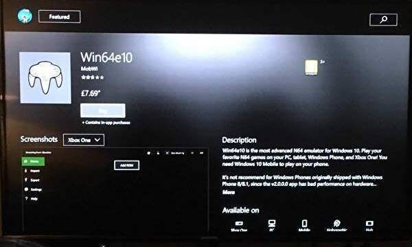 Nesbox, un emulador de NES, Super Nintendo, Mega Drive y Game Boy Color/Advance, no pudo pasar la aprobación de Microsoft en la tienda de Xbox One, pero un emulador menos conocido sí llegó a estar a la venta: Win64e10, en este caso un emulador de Nintendo 64.