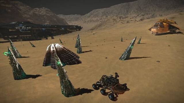 Sin embargo, con su última expansión: Horizons, en la que se permite aterrizar sobre los planetas sin atmósfera, sus desarrolladores han empezado a introducir pequeños misterios poco a poco relacionados con los alienígenas.