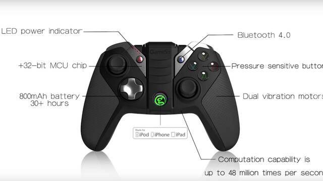 Anunciado como el primer mando para dispositivos iOS construido y diseñado con una textura de goma rugosa para favorecer el agarre, el GameSir M2 se presenta como un accesorio confortable, que busca ofrecer una alternativa profesional para el juego en iPad, iPhone, iPod y Apple TV. Tiene un indicador LED de batería, funciona con Bluetooth 4.0 e incluye soporte de agarre en la parte posterior para ajustar nuestro propio dispositivo.