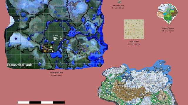 En el último E3, Nintendo aseguró que el escenario visto de The Legend of Zelda: Breath of the Wild suponía un pequeño porcentaje de la extensión total -el 2%-. Para ver la proporción del mapa completo, un usuario de Reedit ha estimado su dimensión mediante algunos cálculos, y lo ha representado en una imagen.