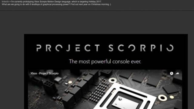 "Estoy desarrollando el prototipo del lenguaje Motion que empleará Xbox Scorpio, que tiene prevista su lanzamiento en las Navidades de 2017. ¿Qué estamos haciendo con 6 teraflops de procesado gráfico? Lo sabréis las próximas Navidades", explicaba.
