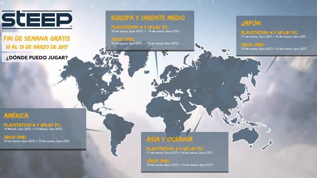 Ubisoft ha anunciado el fin de semana de juego gratuito en Steep, permitiendo a los usuarios de Xbox One, PS4 y PC disfrutar del título de deportes de riesgo en parajes helados sin coste adicional alguno del 10 al 13 de marzo. Para más información, podéis entrar aquí y visualizar el siguiente vídeo explicativo.