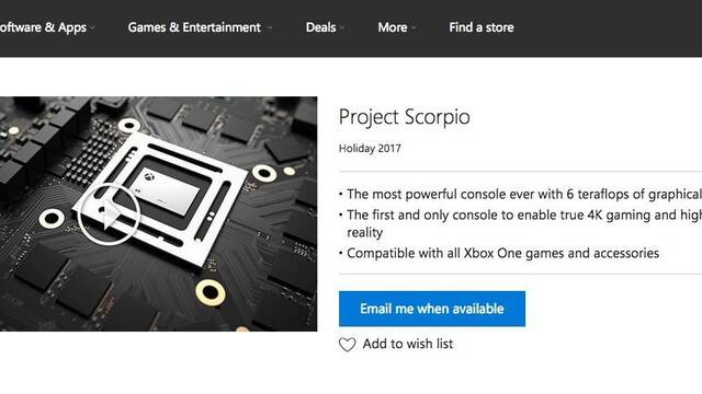 Microsoft ha estrenado una página de producto para Project Scorpio, la próxima consola de la compañía, y cuya presentación oficial se espera para el 11 de junio como parte de la conferencia previa al E3 2017 de la compañía de Redmond.
