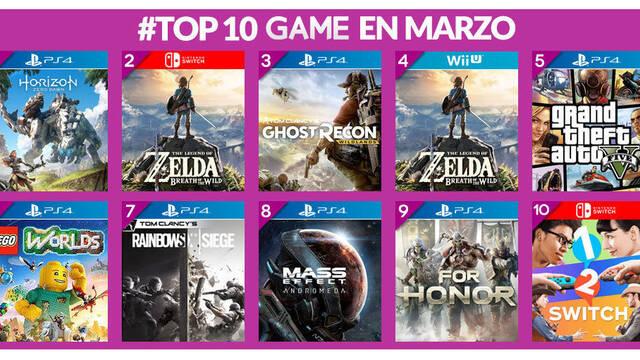 El marzo que hemos vivido en el mundo de los videojuegos ha sido especialmente movido y lleno de grandes lanzamientos, consolas y múltiples cambios en el organigrama del ocio electrónico y digital. En GAME el juego más vendido ha sido el éxito para PlayStation 4, Horizon: Zero Dawn, seguido por The Legend of Zelda: Breath of the Wild para Switch y Ghost Recon: Wildlands también para la sobremesa de Sony.