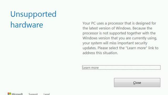 Los ordenadores con estos procesadores empiezan a recibir desde ahora un mensaje que informa al usuario de que se han bloqueado las actualizaciones de seguridad y se les solicita que actualicen su sistema operativo.