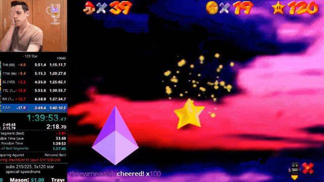 Durante años, la comunidad de speedrunners ha intentado bajar el tiempo en recolección de las 120 estrellas de Super Mario 64 en menos de 1:40:00. Muchos intentos se habían acercado, pero Allan "Cheese05" Alvarez es el primero en conseguirlo al marcar 1:39:57.
