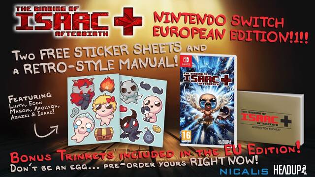 Isaac #Afterbirth+ for Switch gets an official release date: 7th of September in EU and AUS. And no empty retail box! #LogisticalReasons pic.twitter.com/XmXfYCK9mJ— Headup Games (@HeadupGames) 3 de julio de 2017