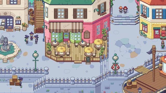 Aunque una sola imagen no da mucha información, podemos ver una localización portuaria con una cafetería y varios personajes que visten con sombreros que nos evocan el mundo de la magia.