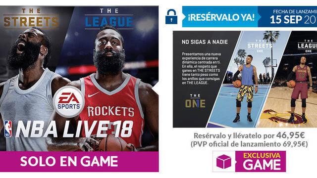 GAME ha anunciado que venderá en exclusiva la edición en formato físico de NBA Live 18 para PlayStation 4, titulada The One Edition. Contará en sus tiendas con una promoción única, pues si lo reservamos, obtendremos un precio especial de 46,95 euros en lugar de los 69,95 euros oficiales el día de lanzamiento.