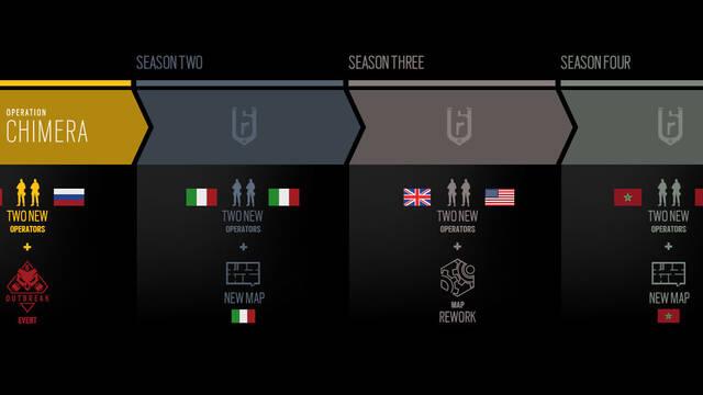 Para el resto del año, la temporada sí ofrecerá un nuevo mapa ambientado en Italia con dos nuevos agentes italianos. La tercera temporada modificará un mapa existente con nuevas mecánicas más un agente de Scotland Yard y otro estadounidense. La temporada 4 sumará un mapa en Marruecos con dos agentes de este país.