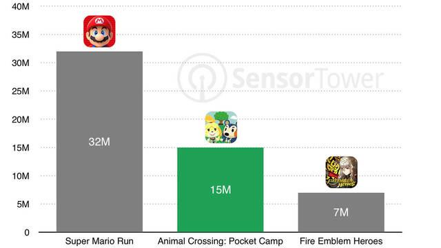 El volumen de descargas inicial de Animal Crossing: Pocket Camp se sitúa en torno a los 15 millones, según un informe ofrecido por la analista del mercado móvil Sensor Tower. El juego es, por tanto, el segundo mejor lanzamiento en móviles de Nintendo, por detrás únicamente de Super Mario Run.