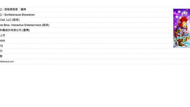 El sistema taiwanés de clasificación de videojuegos por edades ha incluido en sus registros el título Scribblenauts Showdown, asociándolo a las consolas Nintendo Switch, PlayStation 4 y Xbox One.