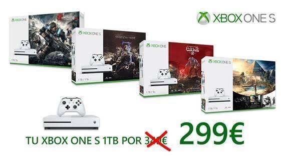 A partir de hoy, los jugadores pueden hacerse con una Xbox One S con capacidad de 1TB por 299 euros. La consola viene acompañada por diferentes packs, donde se cuentan Halo Wars 2, Assassin's Creed Origins, La Tierra Media: Sombras de Guerra, Gears of War 4 o Rainbow Six Siege.