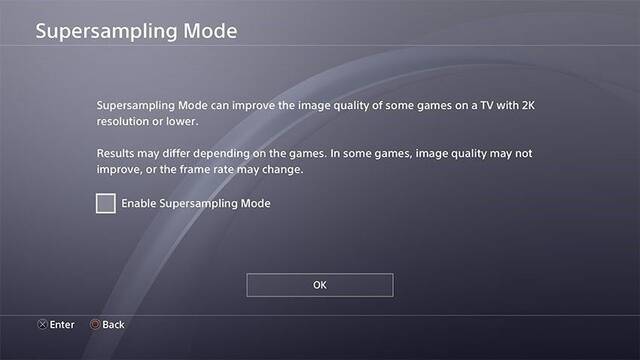 La función más importante de esta beta sería la opción de forzar supersampling en PS4 Pro: "Supersampling Mode puede mejorar la calidad de imagen de algunos juegos en una televisión con resolución 2K o menor. Los resultados pueden ser diferentes según los juegos. En algunos, la calidad podría no mejorar o la tasa de imágenes por segundo cambiar".