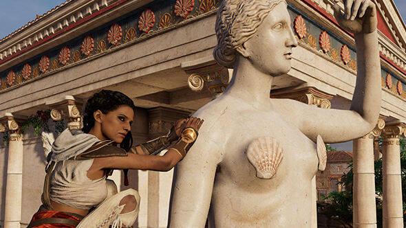 Si bien el juego es para mayores de 18 años, este modo está pensado para jóvenes estudiantes, y probablemente por esta razón Ubisoft ha decidido cubrir pechos y genitales en las estatuas con unas conchas.