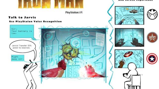 FYI: We had a PSVR IRON MAN game we were prototyping at Bartlet Jones! It was unfunded and @MarvelGames knew NOTHING about it (we were gonna pitch it to them later and HOPE they liked it!:). You could talk to JARVIS using PSVR mic while flying around;was so cool! Maybe one day!:) pic.twitter.com/0QSYkyAogh— David Jaffe (@davidscottjaffe) 27 de febrero de 2018