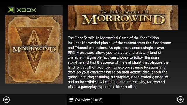 Además, en el caso de The Elder Scrolls III, se mencionan algunas mejoras para Xbox One X, como un aumento de la resolución y mayor filtrado anisotrópico. Se trata de la edición Game of the Year Edition, con las expansiones Bloodmoon y Tribunal.