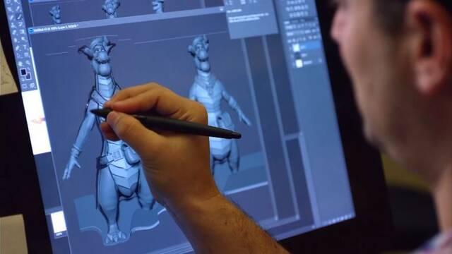 En el segundo 13 se puede apreciar cómo uno de los dibujantes trabaja sobre los conceptos artísticos de uno de los personajes: