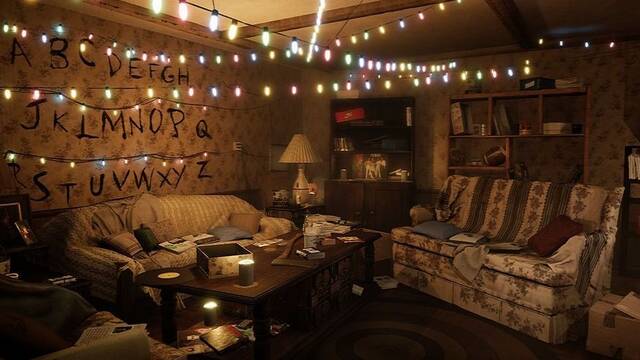 En el vídeo se pueden apreciar algunos de los rincones más emblemáticos que protagonizaron la primera temporada de la serie: la pared con las letras luminosas, la televisión al estilo de los años 80 y todo el mobiliario propio de la casa de Joyce, Will y Jonathan.