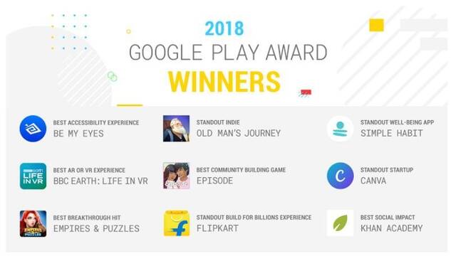 En las categorías relativas a videojuegos los triunfadores han sido Episode, Old Man's Journey y Empires & Puzzles.