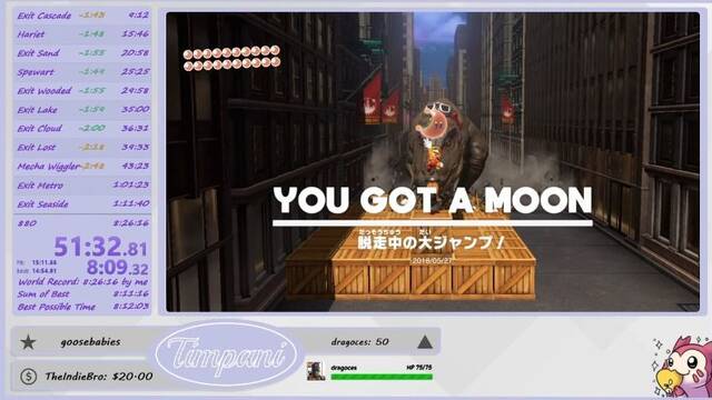 Obtener 880 lunas puede llevarnos docenas de horas, pero el speedrunner Timpani batió su propio récord el pasado 27 de mayo, en la categoría dedicada a este coleccionable.