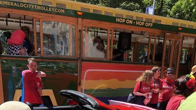 A bunch of us are marching to represent @NintendoAmerica at the Seattle Pride parade. #PlayitProud pic.twitter.com/lV3RKejPwA— Jose Otero (@jose_otero) 24 de junio de 2018